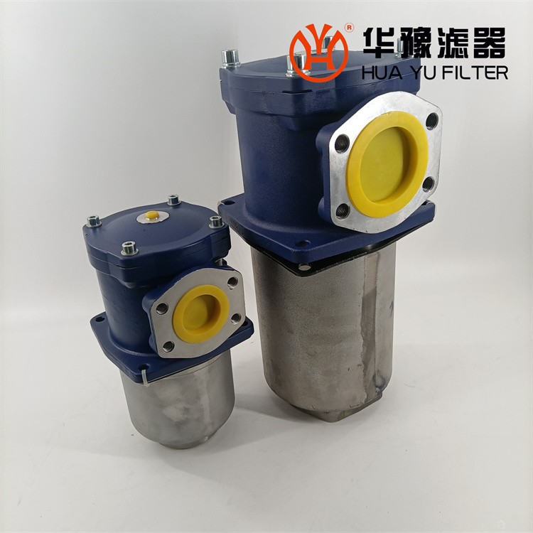 該過濾器的濾芯采用化纖過濾材質,具有過濾精度高,通油能力大,初始壓力損失小,納污量大等優(yōu)點,并裝有壓差發(fā)訊器及旁通閥。當濾芯堵塞到進出油口壓差為0.35MPa時,便發(fā)出開關信號,此時應更換濾芯。如果不能馬上停機或無人來更換濾芯,裝在濾芯上部的旁通閥會自動開啟,以保護系統(tǒng)。