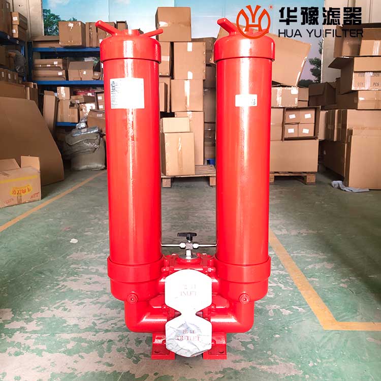 它的工作特點(diǎn)是當(dāng)一只過(guò)濾器濾芯堵塞需更換時(shí),不需要停止主機(jī)工作,只要打開壓力平衡閥并轉(zhuǎn)動(dòng)換向閥,另一只過(guò)濾器即可參加工作,然后更換已堵塞的濾芯。