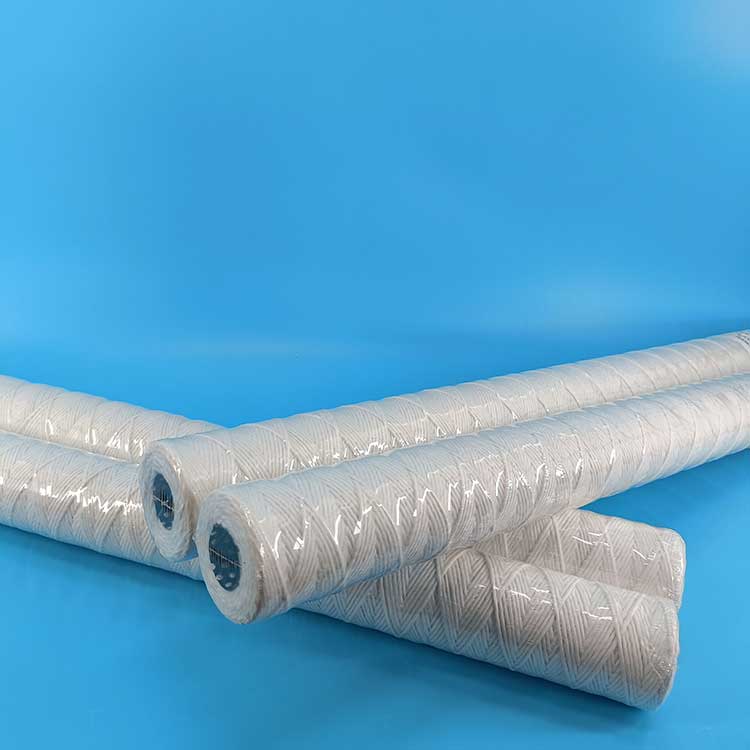 線繞濾芯具有良好過濾性能的紡織纖維紗線精密纏繞在多孔骨架上精制而成的。其紗線材料有丙綸纖維、晴綸纖維、脫脂棉纖維等。纏繞時(shí)通過控制紗線的纏繞松緊度和稀密度,可以制成不同精度的過濾芯。